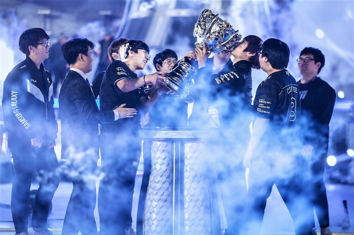上屆《英雄聯盟》世界總決賽冠軍得主:Samsung Galaxy的奪冠照片。(現已改名為KSV) 圖:翻攝自 LOL Esports flickr