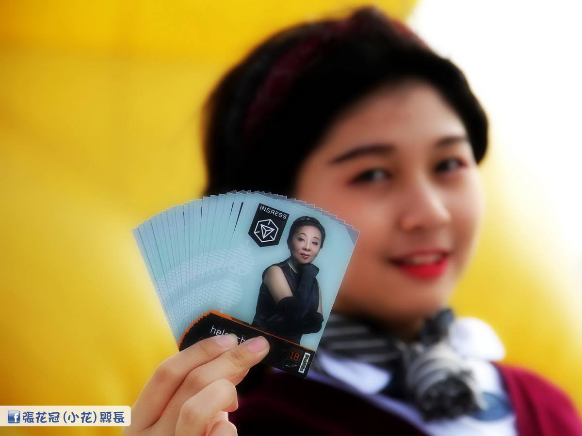 「 2018台灣燈會在嘉義」與全球知名的擴增實境遊戲《Ingress》合作,任務首日即吸引各地人潮,嘉義縣縣長張花冠也到場與玩家互動,並致贈她親筆簽名、專屬小花的 Bio Card (玩家遊戲卡)。 圖:翻攝自 張花冠(小花)縣長 粉絲專頁