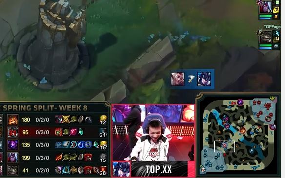 TOP打野選手Xx在3月19日的比賽中,表現出散漫不積極的態度,被擊殺時還露出開心的笑容。 圖:翻攝自 LPL 官方影片