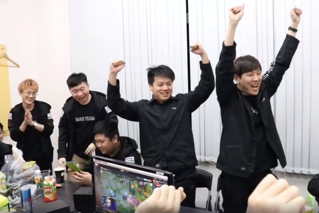 ahq獲勝後,MAD確定晉級季後賽,全員欣喜若狂。 圖:翻攝自 MAD Team 臉書專頁