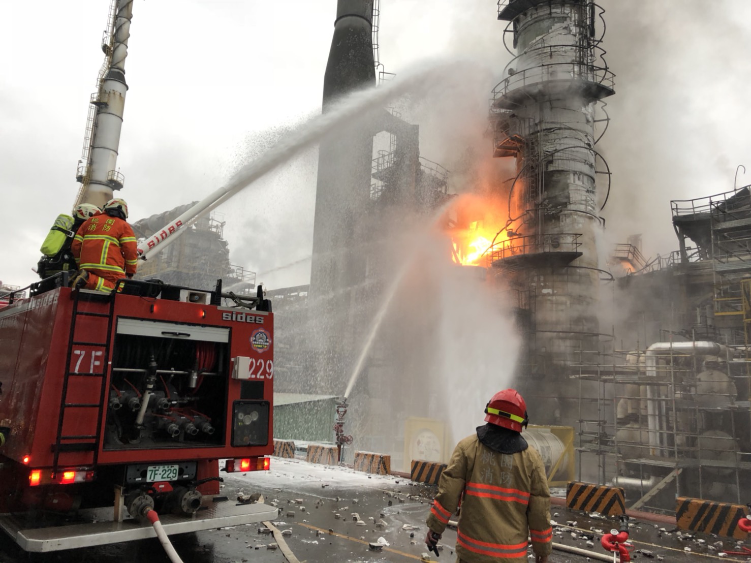 中油煉油廠2018年1月29日爆炸資料畫面。 圖: 桃園市政府消防局/提供