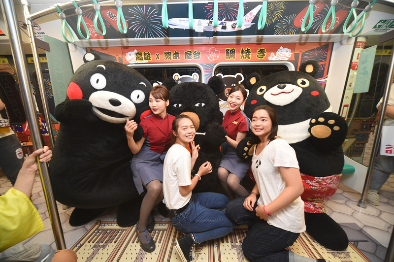 台灣知名吉祥物喔熊、高雄熊與日本超人氣吉祥物熊本熊19日合體,齊聚高雄捷運紅線為高捷賣萌行銷彩繪車廂。 圖:中央社
