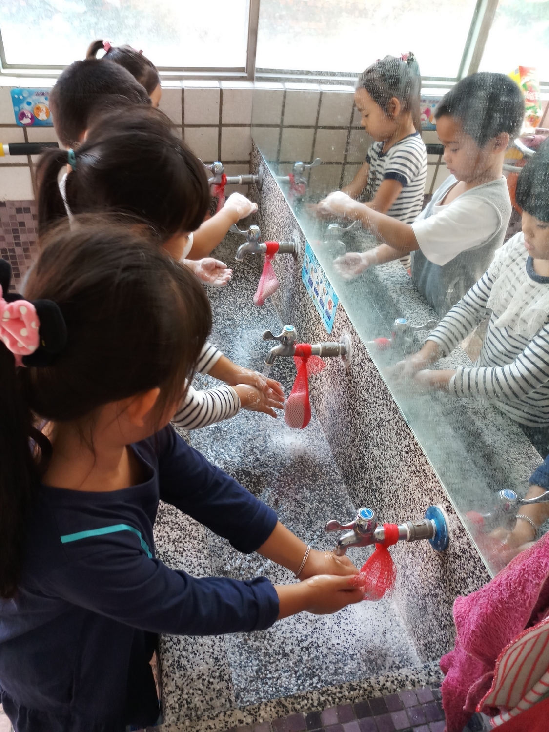 天氣炎熱,正值腸病毒流行期,高雄市衛生局呼籲,別忽視孩子衛生,謹記「洗手、洗臉、換衣服!」的原則。 圖:高雄市衛生局/提供