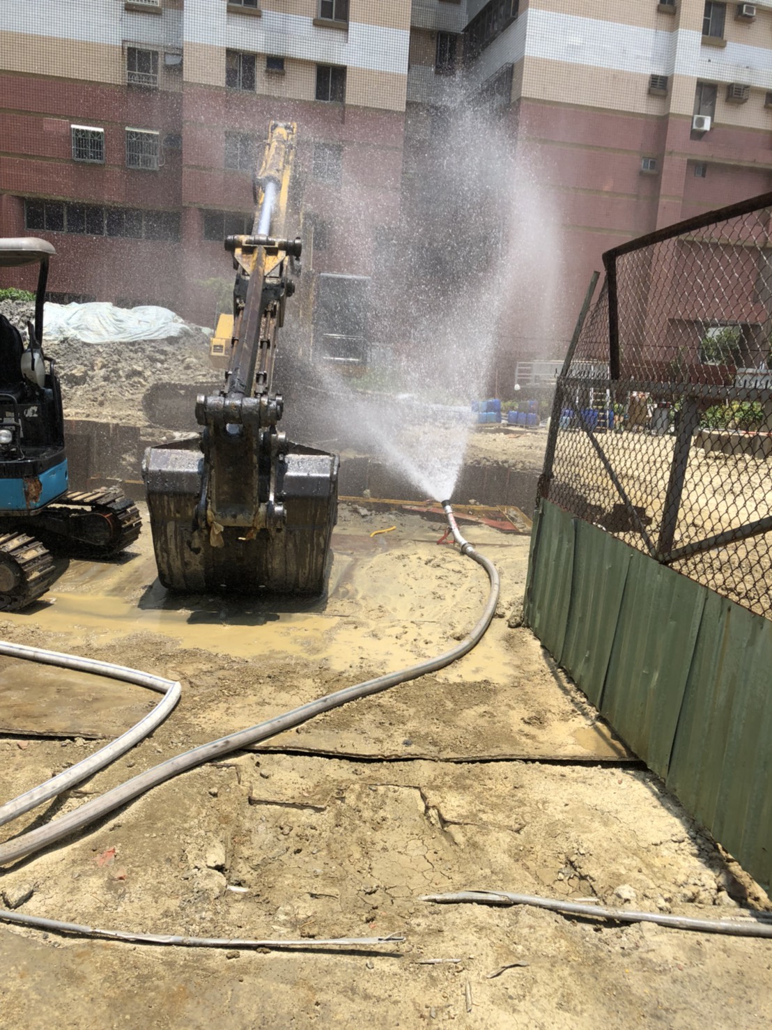 今(23)日10:49高雄市左營區大順一路、富民路口附近加油站的舊址,有當地居民反應聞到空氣有瀰漫汽油和瓦斯異味,環保局調查,違反空污法第31條將依污染情節裁罰10-100萬元,以灑水控制中。 圖:高雄市環保局提供