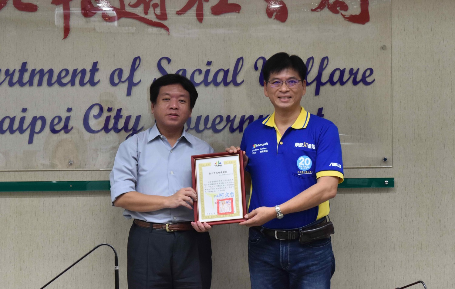 社會局致贈感謝狀予民間電腦公司。 圖:台北市社會局/提供