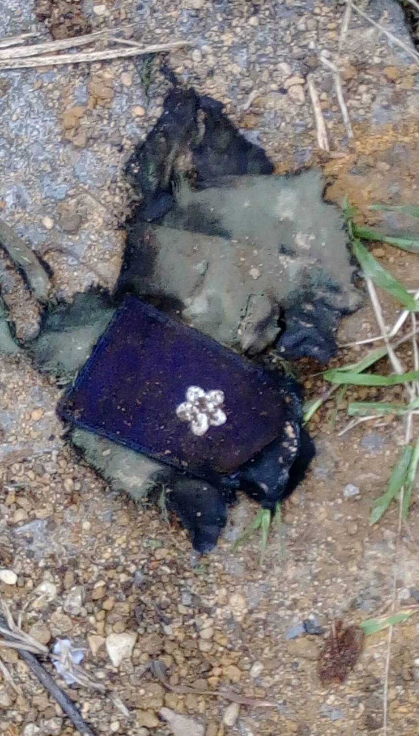 基隆市消防局人員於步道上尋獲飛行員肩章,有燒灼痕跡。 圖:中央災害應變中心/提供