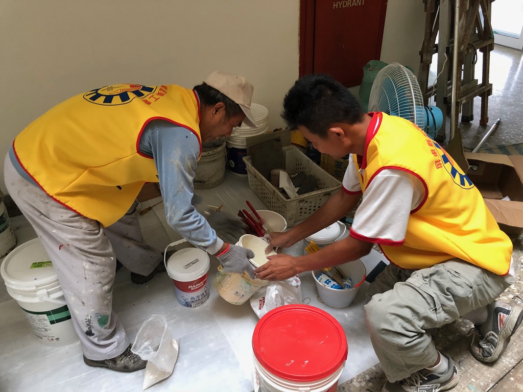 屏東縣油漆業職業工會志工隊今 (3) 日來到衛生福利部的南區老人之家,協助油漆粉刷低收入戶老人家的居住空間,利用星期假日休息時間出來當志工,預計兩周後可以完成,希望帶給入住的老人家煥然一新的居住空間。