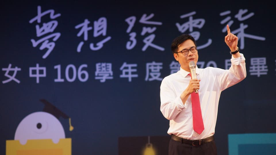 陳其邁表示,他今天是以一個家長的身分來到這裡,女兒即將畢業,離開父母身邊,也許會碰到很多挑戰或困難,但他相信在座所有和他女兒一樣的雄女畢業生,一定能解決困難,克服挑戰。