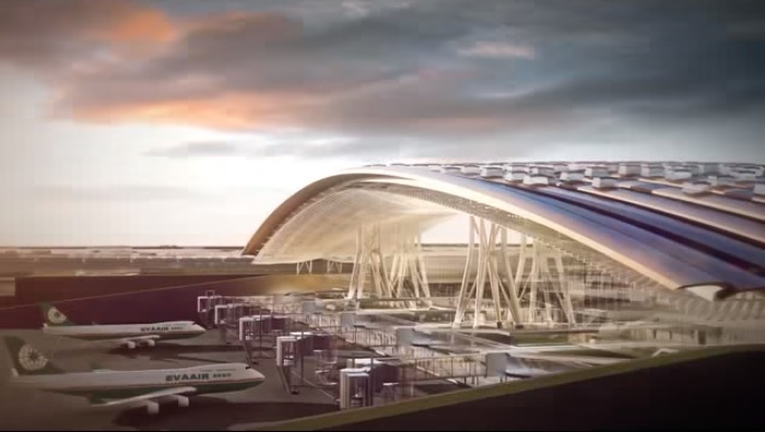 桃園國際機場舉辦第三航站國際競圖,於2015年選出設計首獎。 圖:翻攝YouTube