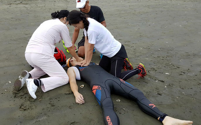經過救難人員施予CPR,彭姓選手送醫後已恢復心跳,但仍未脫離險境。 圖/嘉義縣水上救生協會理事長呂文正提供