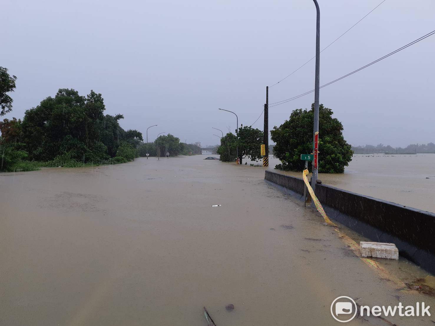 嘉義縣永欽橋附近淹水,汪洋一片。 圖:蔡坤龍/攝