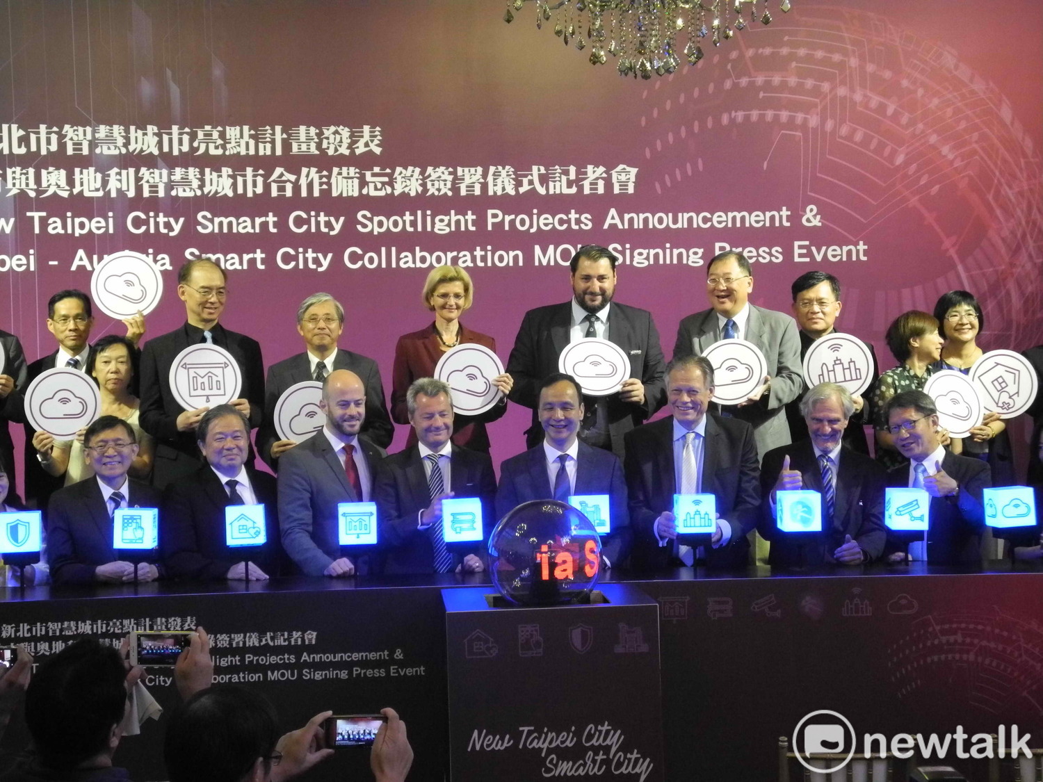 新北市政府今 (1)日與奧地利科技合作組織 (ATC)簽署「智慧城市合作備忘錄」 (MOU),宣告新北市智慧城市擴大升級、接軌國際,包括發展智慧戰警等警政科技的「新北AI防護城」,以及消防、工務、社會福利及經濟發展等五大領域的智慧城市創新服務,要讓市民生活更美好,並帶動產業交流。