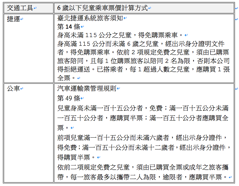 簡舒培更表示,對比世界各國大城市針對6歲以下兒童的收費方式,大多比台北市寬容,其中以德國柏林最為友善,6歲以下一律無須購票搭乘,法國馬賽則規定只要有一名家長之陪伴,皆可免費搭乘,另外,美國紐約規定111公分以下皆免費,一名大人最多帶三位幼童,英國倫敦則是規定必須有大人陪同皆可免費搭乘,一名大人最多帶四位幼童。