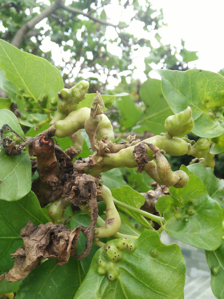 行道樹是道路上不可或缺的存在,擁有美化環境、淨化空氣、減輕噪音及庇蔭行人等功能,而刺桐釉小蜂是近年來台灣新紀錄的外來造癭昆蟲,主要危害刺桐屬植物,藉由雌蟲產卵於新生嫩芽或葉片中,刺激葉肉組織產生不正常增生或肥大。受害刺桐因頂端無新生葉片進行光合作用及蒸散作用,使植株養分不足造成整株刺桐樹皮潰爛死亡。