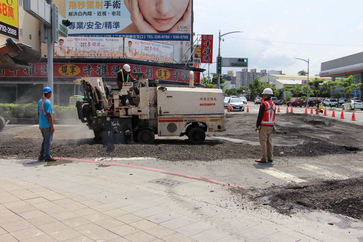 至於前鎮區一心一路與和平二路日前發生路面淘空造成汽車陷入坑洞一事,水利局說,因破損處下方排水涵管錯位,且自來水管破裂滲水使土砂流失情形加劇,淘空影響範圍長約為10公尺、寬約為8公尺,深度約4公尺,水利局徹夜開挖搶修,為顧及用路安全,必須確保路基乾固後於今日復原路面AC,並恢復道路AC開放交通通行。