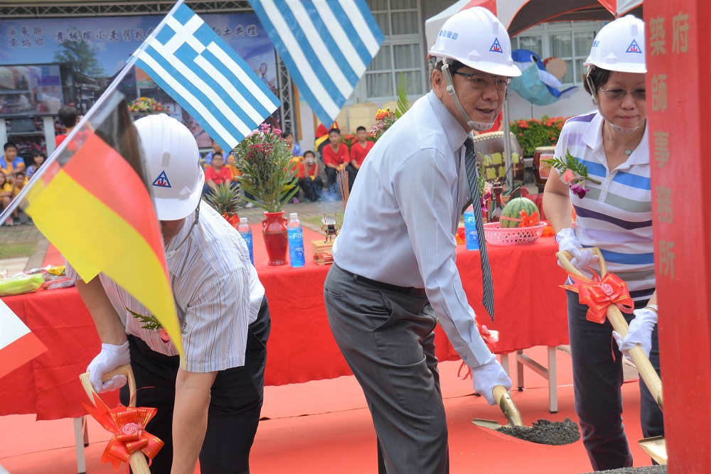 屏東縣車城國小為改善學生教育環境,保障全體師生安全,今(10)日隆重舉辦了老舊校舍整建工程動土典禮,並邀請地方官員及村民參加;也畢業自車城國小的縣長潘孟安,對於親臨母校參與典禮,表示倍感溫馨。