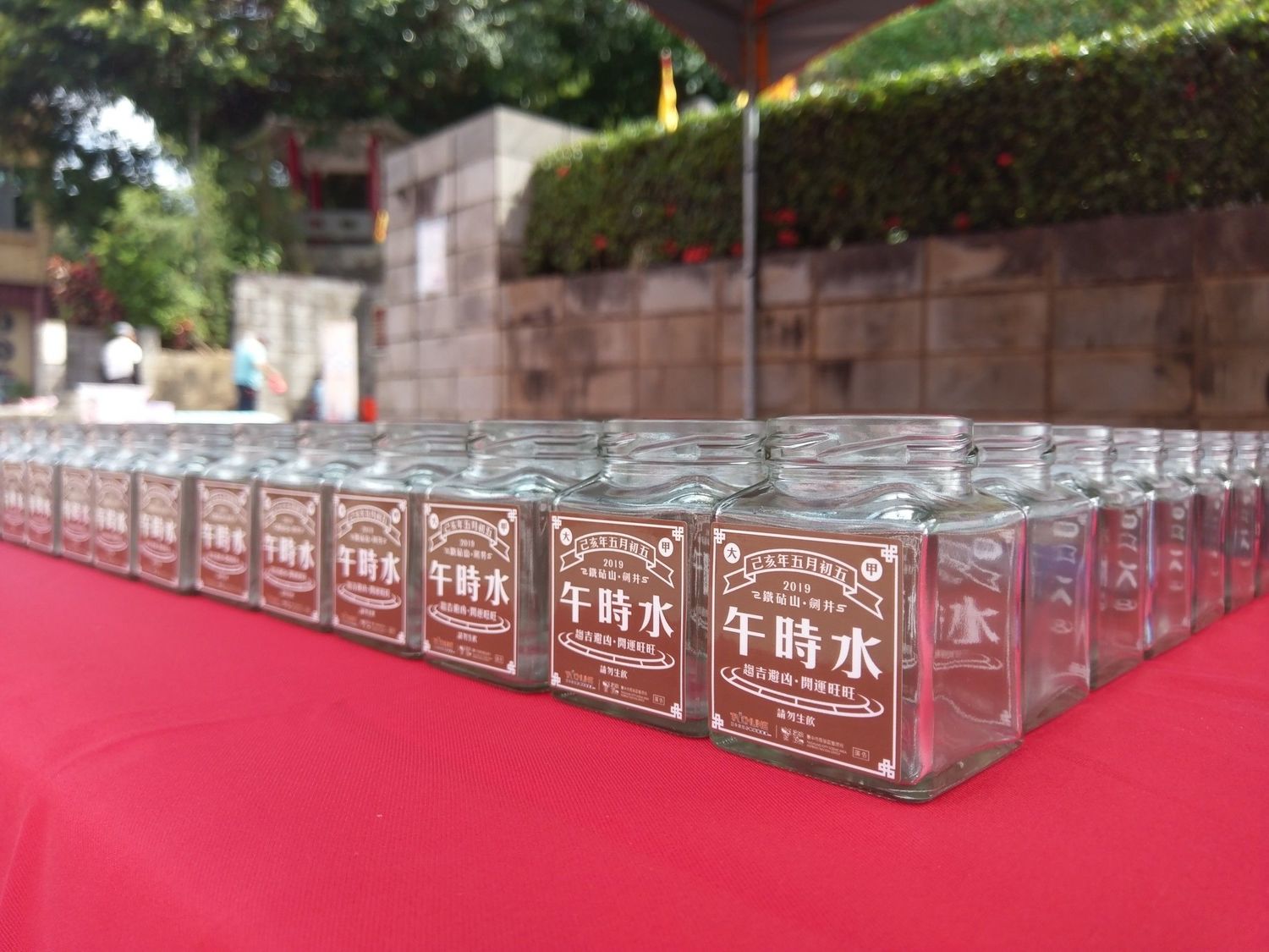 數百民眾今(7)日上午湧入台中市大甲鐵砧山劍井前廣場排隊領取「午時水」,台中市政府觀旅局提供500份富文創味的午時水紀念瓶,很快就被索取一空;現場還有立蛋、艾草應景掛飾DIY、開運闖關拿好禮、香包小學堂以及樂團音樂饗宴等節慶文化活動,讓民眾感受濃濃的端午節氣氛。
