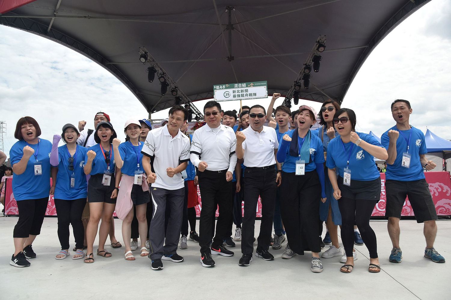 新北市長侯友宜及新北市體育總會理事長黃志雄及也到現場為選手加油打氣。侯友宜表示,新北市議長盃吸引各國好手前來爭取榮耀,每年參加的隊伍也愈來愈多,今年96隊中有21隊來自外國,可說是國際型的龍舟競賽,希望大家都以愉悅健康的心態,慶祝傳統的端午文化,並享受划龍舟的樂趣,別太計較輸贏。