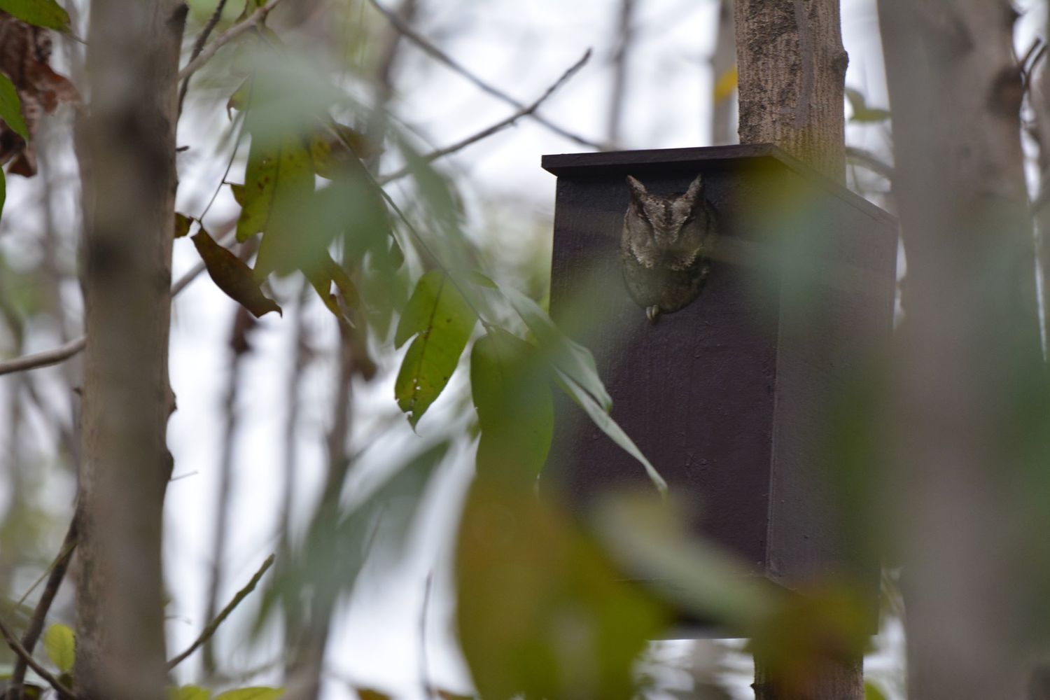 巢箱放置後,除領角鴞外,可能也會有黃嘴角鴞或五色鳥來居住,以領角鴞而言,一次可能會下1到4顆蛋,預計3到4周左右會孵化出來,大約再4周左右就會跟親鳥到外面生活,因此,如果春季在地上撿到貓頭鷹,代表牠還在學習飛翔,請把牠放回樹上就好。